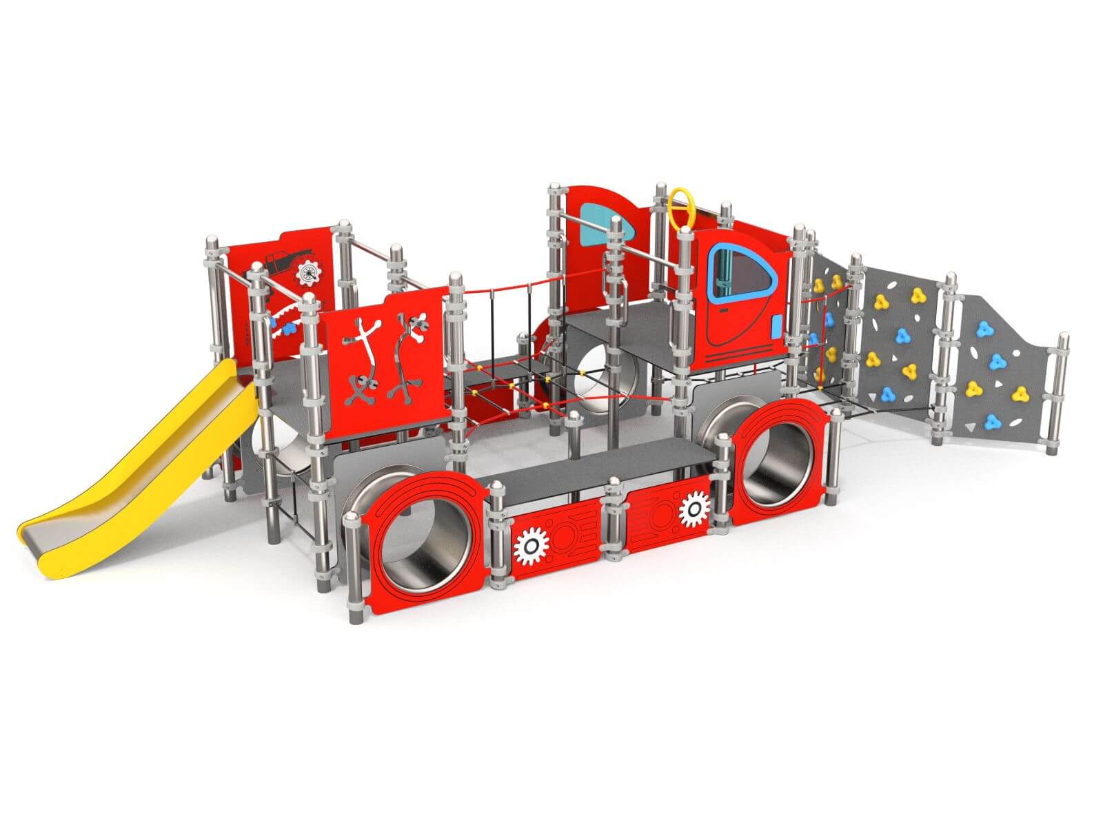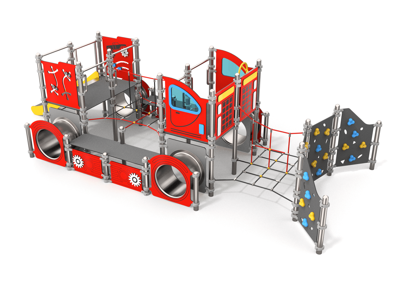 Stor “snowcat” beltevogn med mange detaljer som klatrevegger, klatrenett, kryptunneler, rutsjebane og mye mer!