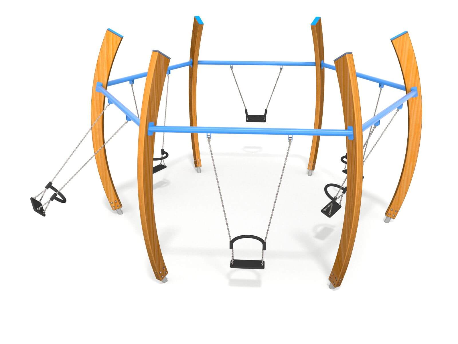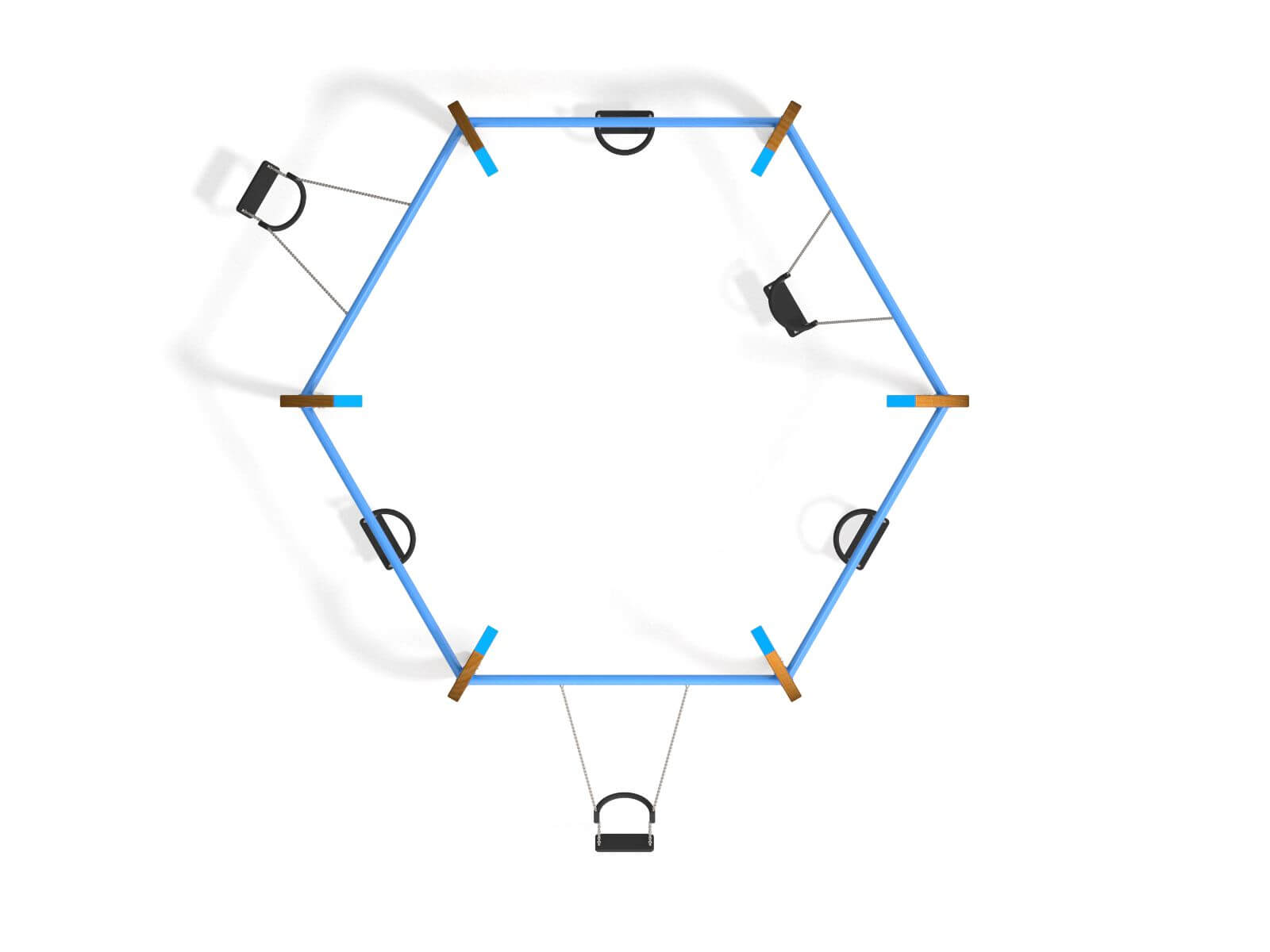 Sekskantet huskestativ, inkludert oppheng og seter.