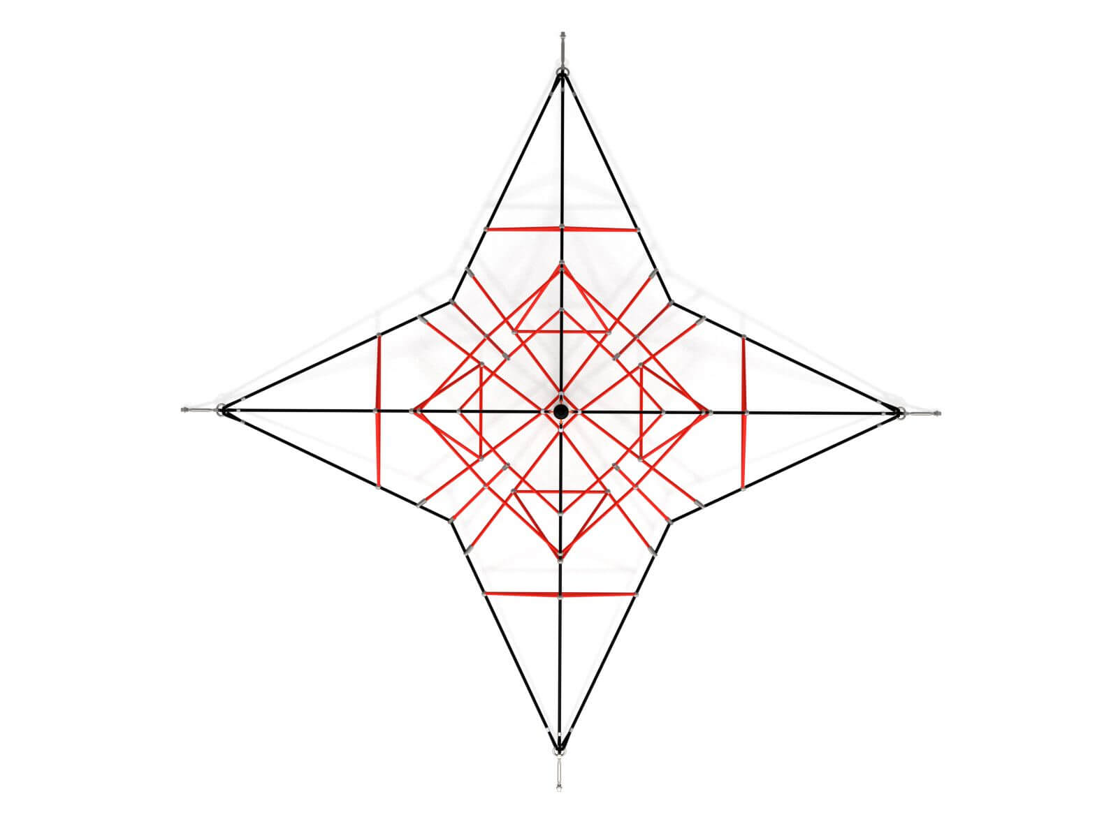 Liten klatrepyramide på 2 meter med romslig klatrenett.