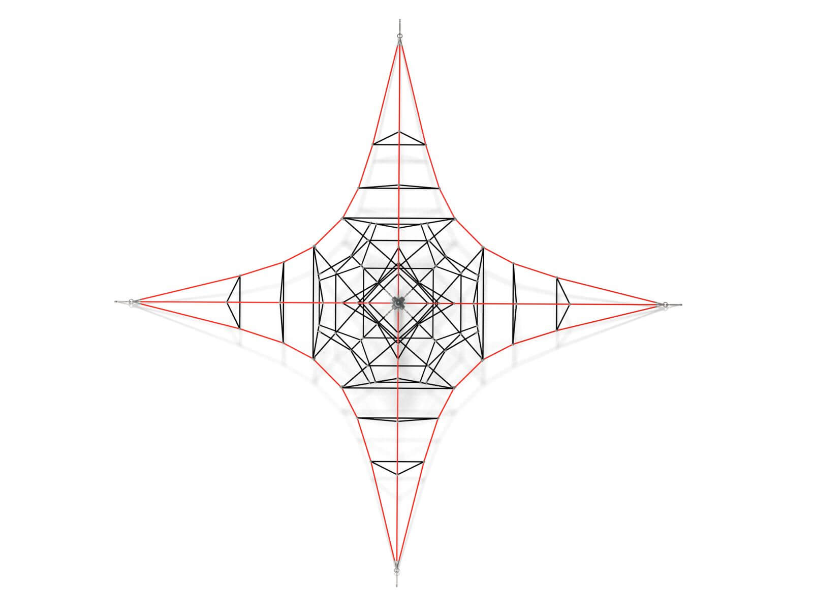 Romslig og vid klatrepyramide med høyde på 4 meter.